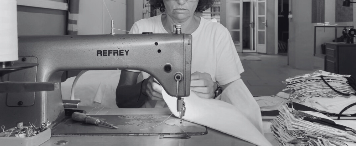 Confeccionamos en nuestro propio taller y también en colaboración con otros espacios locales. Mujeres que han tenido más difícil acceder al empleo, ya sea por edad u otras circunstancias, participan en la producción, dando valor añadido a cada pieza de packaging.